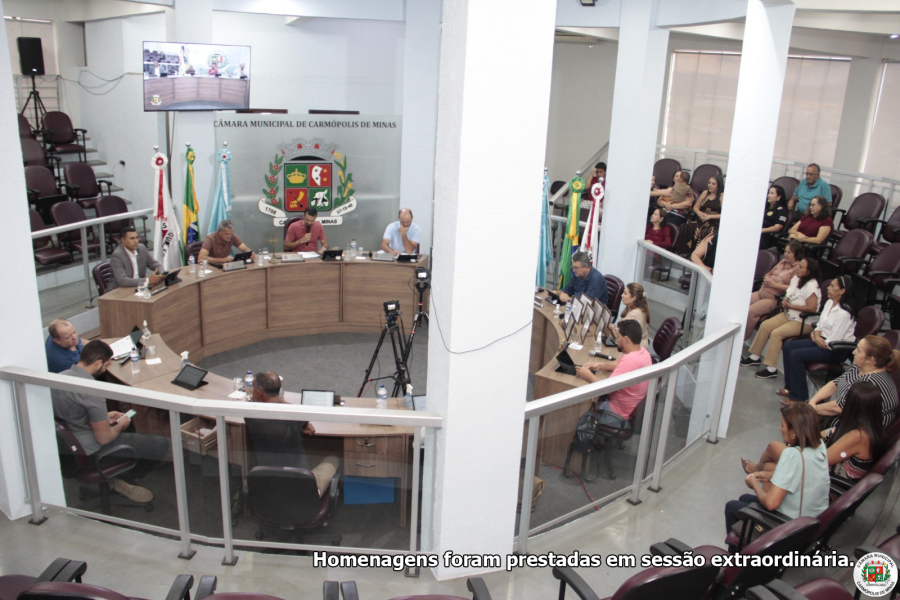 A Câmara Municipal de Carmópolis de Minas entregou, em sessão extraordinária realizada no dia 6 de abril de 2026, moções de aplauso a mulheres que atuam no município, entre as quais a mães de vereadores. O presidente Claudinei Vicente da Silveira (REDE) enfatizou que, com as homenagens especiais, o Poder Legislativo celebrava histórias de coragem, dedicação e serviços à comunidade e que, em todos os espaços que ocupam, na família, no trabalho e na sociedade, as mulhertes deixam marcas de transformação, amor e esperança.